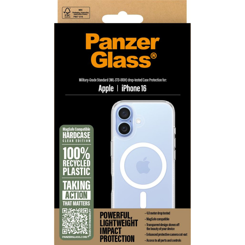 PanzerGlass ® HardCase Transparent w. White MagSafe iPhone 16. Somas veids: Aploksne, Zīmolu saderība: Apple, Savietojamība: Apple - iPhone 16, Produkta krāsa: Caurspīdīgs